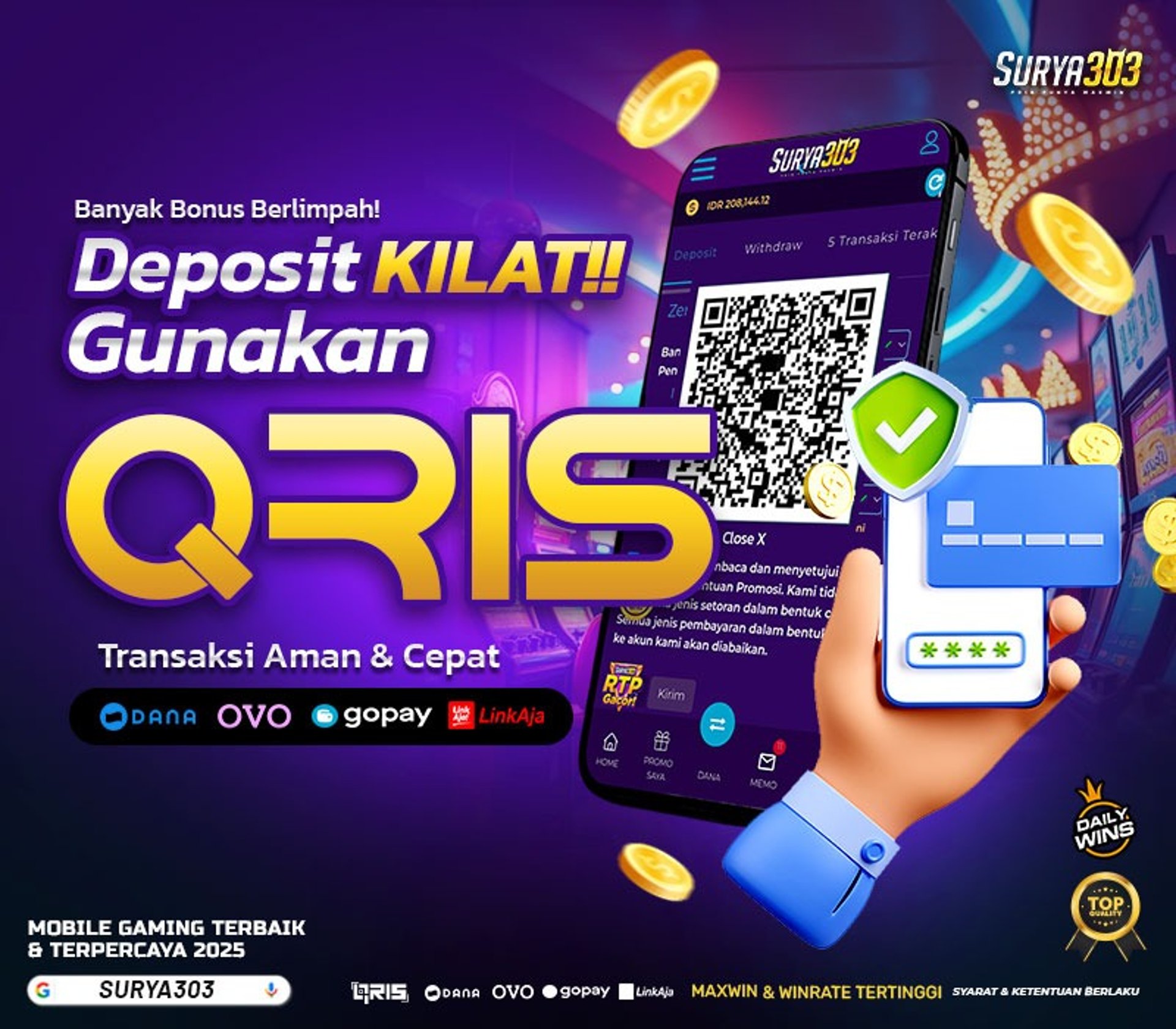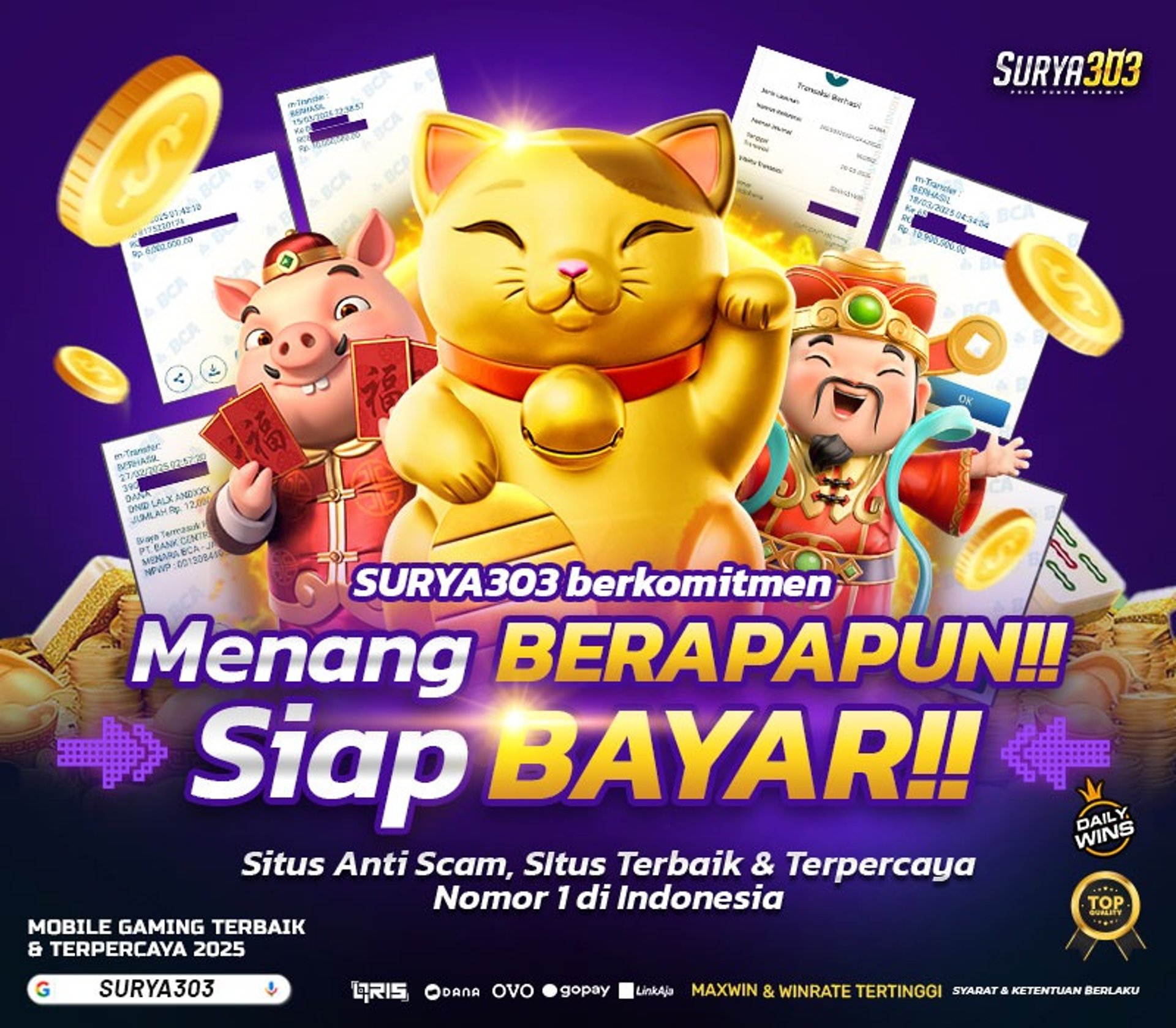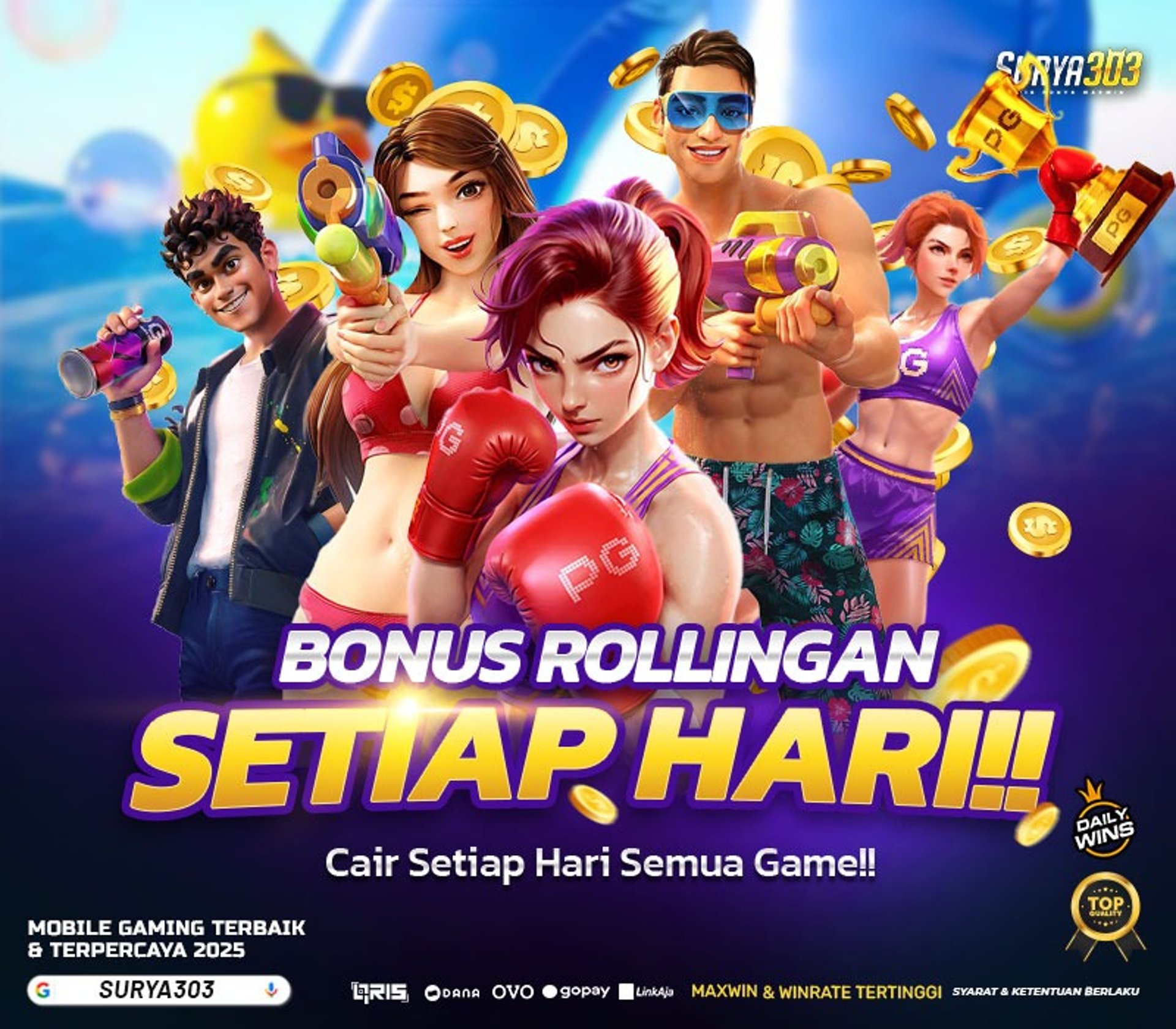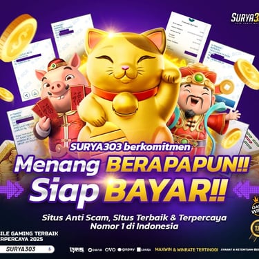 Bermain slot gacor di Surya303 jadi pilihan terbaik untuk kamu yang ingin sensasi seru sekaligus peluang menang lebih besar. Dengan koleksi game slot terlengkap, RTP tinggi, dan update gacor setiap hari, Surya303 menghadirkan pengalaman bermain yang aman, cepat, dan pastinya menguntungkan.